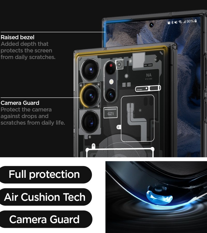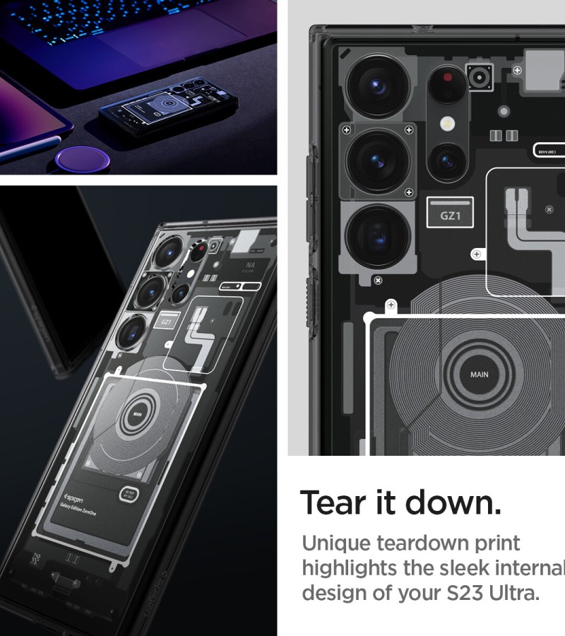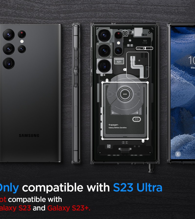 SPIGEN Case for Galaxy S23 Ultra [Ultra Hybrid : Zero One] Hybrid Technology Made of TPU Bumper Polycarbonate Back / Samsung Galaxy S23 Ultra Case / Galaxy S23 Ultra Casing