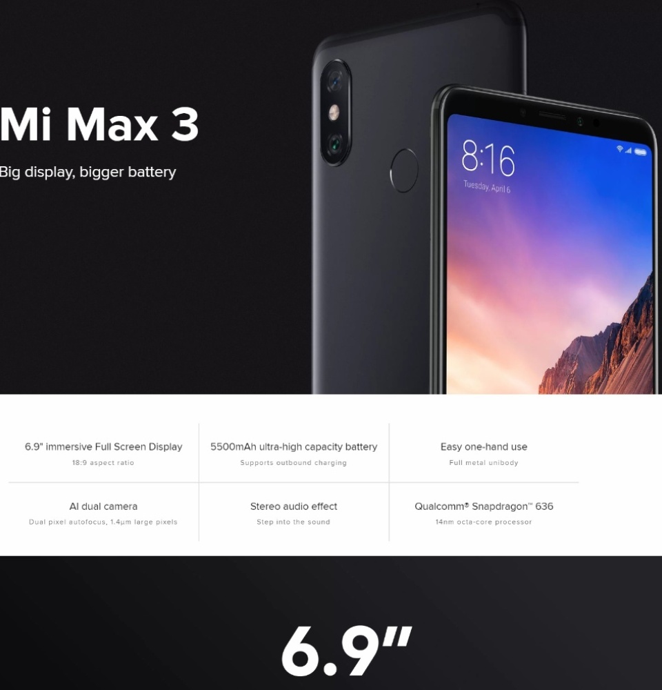 【全新密封】全球版小米Max 3 64GB ROM 4GB RAM
